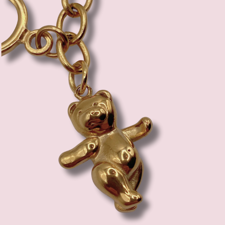 Plongez dans l'alliance parfaite entre sophistication et élégance avec nos bijoux en acier inoxydable doré plaqué Or 18K, ornés d'un pendentif ourson unique.
